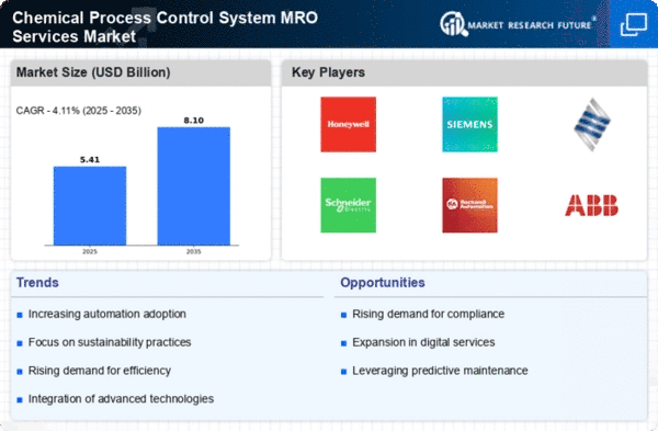 Europe, with a market size of 1.5 billion, is experiencing growth in the Chemical Process Control System MRO Services Market, driven by stringent regulatory requirements and a push for sustainability. The region's focus on reducing carbon emissions and enhancing operational efficiency is propelling demand for advanced MRO services. Regulatory bodies are increasingly emphasizing the importance of compliance, which is a key driver for market expansion in this region.