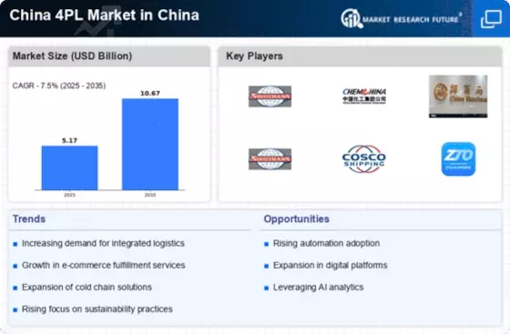Government policies play a crucial role in shaping the China 4PL market. Recent initiatives aimed at enhancing logistics efficiency and reducing costs have been introduced, including the 'Made in China 2025' strategy, which emphasizes the importance of advanced manufacturing and logistics. Additionally, the implementation of the National Logistics System aims to streamline operations and improve service quality across the supply chain. These regulatory frameworks encourage investment in logistics infrastructure, which is essential for the growth of the 4PL sector. As the government continues to prioritize logistics development, the China 4PL market is likely to benefit from increased funding and support, fostering a more competitive environment.