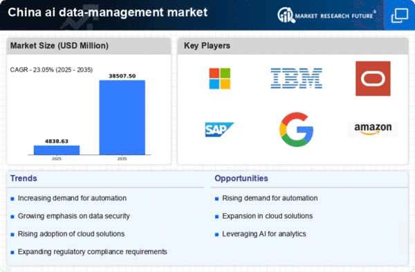As data privacy concerns continue to rise, the ai data-management market in China is witnessing an increased focus on compliance with data protection regulations. The implementation of stringent data privacy laws is compelling organizations to adopt robust data management practices. Companies are investing in solutions that ensure compliance with regulations such as the Personal Information Protection Law (PIPL), which mandates strict guidelines for data handling. This regulatory landscape is likely to drive growth in the ai data-management market, as businesses seek to mitigate risks associated with data breaches and non-compliance. By 2025, it is anticipated that the market will expand by 20% as organizations prioritize data privacy and security in their data management strategies.
