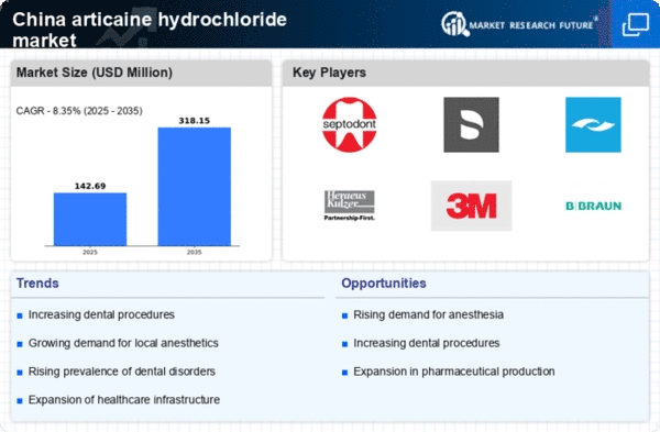 The growing awareness of dental health among the Chinese population is a crucial driver for the articaine hydrochloride market. As more individuals recognize the importance of oral hygiene, there is a corresponding rise in demand for dental procedures, including surgeries that utilize articaine hydrochloride as a local anesthetic. Reports indicate that dental visits in urban areas have increased by approximately 15% over the past few years, reflecting a shift in public perception towards proactive dental care. This trend is likely to continue, as educational campaigns and improved access to dental services further promote the significance of maintaining oral health. Consequently, the articaine hydrochloride market is poised to benefit from this heightened focus on dental care, leading to increased sales and utilization of this anesthetic in various dental practices.