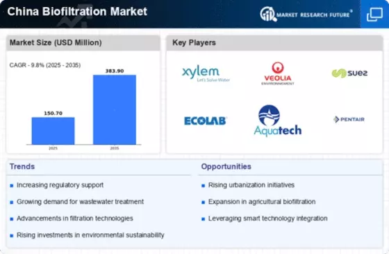 The China Biofiltration Market is experiencing robust growth due to the supportive regulatory environment established by the government. The Chinese government has implemented various policies aimed at promoting sustainable practices and environmental protection. For instance, the 13th Five-Year Plan emphasizes the importance of ecological civilization, which includes the adoption of biofiltration technologies in wastewater treatment. This regulatory framework not only encourages investment in biofiltration systems but also mandates compliance with stringent environmental standards. As a result, companies are increasingly adopting biofiltration solutions to meet these regulations, thereby driving market growth. Furthermore, the government has allocated significant funding for research and development in biofiltration technologies, which is expected to enhance the efficiency and effectiveness of these systems in the coming years.