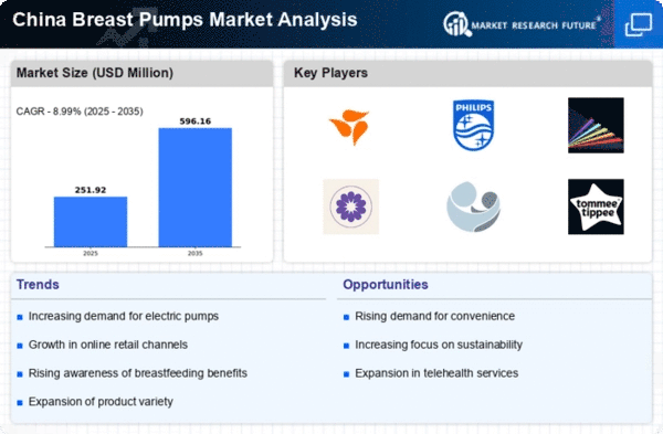 The rising participation of women in the workforce in China appears to be a significant driver for the breast pumps market. As more women pursue careers, the demand for breast pumps increases, allowing them to balance professional responsibilities with breastfeeding. According to recent statistics, the female labor force participation rate in China has reached approximately 60%, indicating a growing need for convenient breastfeeding solutions. This trend suggests that the breast pumps market is likely to expand as working mothers seek products that facilitate breastfeeding while managing their careers. The breast pumps market is thus positioned to benefit from this demographic shift, as manufacturers may focus on developing innovative and portable breast pump designs to cater to the needs of busy mothers.