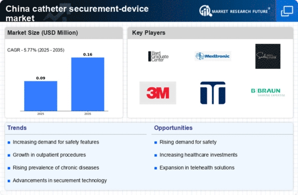 The increasing focus on patient safety within the healthcare system is a significant driver for the catheter securement-device market. As hospitals and healthcare providers in China prioritize patient outcomes, the demand for devices that enhance safety and reduce complications is likely to grow. Initiatives aimed at minimizing catheter-related infections and improving overall care quality are becoming more prevalent. In 2025, it is estimated that the market for catheter securement devices will grow by 15% as healthcare facilities implement stricter protocols and invest in technologies that support patient safety. This trend indicates a shift towards a more proactive approach in healthcare, where securement devices are recognized as essential tools in preventing adverse events and ensuring optimal patient care.