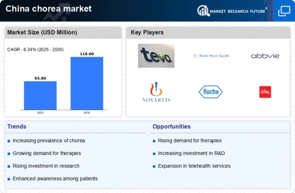 Government initiatives aimed at improving healthcare infrastructure in China are expected to significantly influence the chorea market. Increased funding for neurological research and treatment programs is likely to enhance the availability of resources for patients suffering from chorea disorders. For instance, the Chinese government has allocated substantial budgets for healthcare improvements, which may include the development of specialized clinics and training for healthcare professionals. This focus on enhancing healthcare services could lead to better management of chorea disorders, thereby expanding the market and improving patient outcomes in the chorea market.