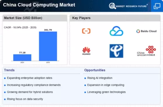 In the context of the China Cloud Computing Market, the emphasis on data sovereignty is becoming increasingly pronounced. The Chinese government has implemented stringent regulations regarding data localization, compelling companies to store and process data within national borders. This regulatory landscape is driving the demand for domestic cloud service providers, as businesses seek to comply with local laws while ensuring data security. As of February 2026, the market for domestic cloud services is projected to grow significantly, with local providers gaining a competitive edge over international players. This focus on data sovereignty not only enhances trust among consumers but also fosters the growth of the China Cloud Computing Market.