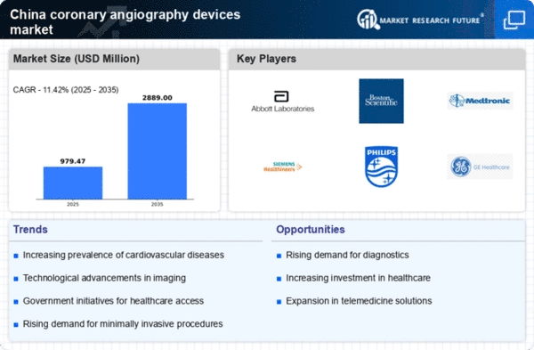 The rising incidence of cardiovascular diseases in China is a primary driver for the coronary angiography-devices market. According to health statistics, cardiovascular diseases account for approximately 40% of all deaths in the country. This alarming trend necessitates advanced diagnostic tools, including coronary angiography devices, to facilitate early detection and treatment. As the population ages and lifestyle-related health issues become more prevalent, the demand for these devices is expected to surge. The coronary angiography-devices market is projected to grow significantly, with estimates suggesting a compound annual growth rate (CAGR) of around 10% over the next five years. This growth is likely to be fueled by increased awareness and the need for effective cardiovascular interventions.