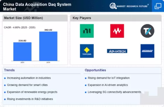 The China Data Acquisition Daq System Market is experiencing a notable surge in demand for automation across various sectors, including manufacturing, energy, and transportation. This trend is driven by the need for enhanced efficiency and productivity. According to recent statistics, the automation market in China is projected to reach USD 200 billion by 2025, indicating a robust growth trajectory. As industries increasingly adopt automated processes, the reliance on data acquisition systems becomes paramount. These systems facilitate real-time monitoring and control, thereby optimizing operations. Consequently, the integration of advanced Daq systems is likely to play a crucial role in meeting the automation demands of the Chinese market.
