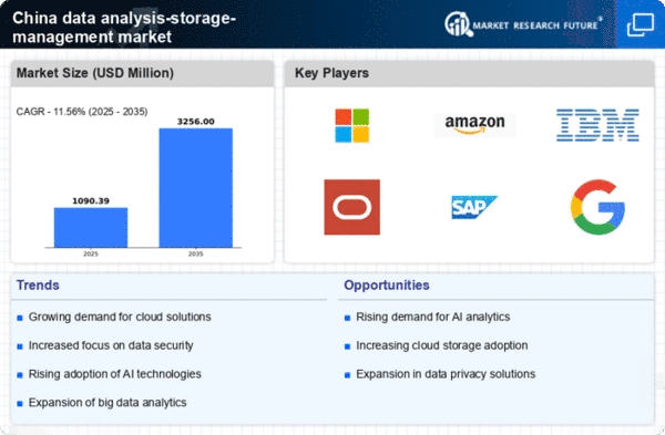 The data analysis-storage-management market in China is experiencing a notable surge in demand for big data analytics. As organizations increasingly recognize the value of data-driven decision-making, investments in analytics tools and technologies are projected to grow. In 2025, the market for big data analytics in China is expected to reach approximately $20 billion, reflecting a compound annual growth rate (CAGR) of around 25%. This growth is driven by various sectors, including finance, healthcare, and retail, which are leveraging data insights to enhance operational efficiency and customer engagement. Consequently, the data analysis-storage-management market is likely to benefit from this trend, as companies seek robust storage solutions to manage the influx of data generated by analytics processes.