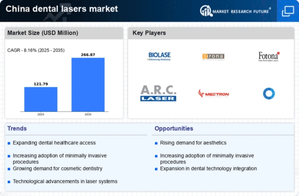 The integration of advanced technologies in dental practices is a key driver for the dental lasers market. As dental clinics in China adopt modern equipment and techniques, the demand for laser systems is likely to increase. This integration not only enhances the efficiency of dental procedures but also improves patient experiences. Laser technology allows for more precise treatments, reducing the need for anesthesia and minimizing recovery times. The dental lasers market is expected to grow as more practitioners recognize the benefits of incorporating lasers into their practices. With an estimated 30% of dental clinics in urban areas already utilizing laser technology, this trend is anticipated to continue, further propelling market growth.