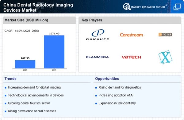 China's aging population is a significant driver for the dental radiology-imaging-devices market. As the demographic shifts towards an older population, the prevalence of dental issues such as periodontal disease and tooth decay increases. This trend necessitates the use of advanced imaging technologies for effective diagnosis and treatment planning. By 2025, it is estimated that the market will grow by 6.5%, largely due to the rising demand for dental services among older adults. Furthermore, the growing emphasis on maintaining oral health in later years encourages the adoption of sophisticated imaging devices, ensuring that dental professionals can meet the needs of this demographic effectively.
