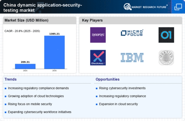 The Chinese government is actively promoting cybersecurity initiatives, which significantly impacts the dynamic application-security-testing market. Recent regulations mandate that organizations implement stringent security measures to protect user data and ensure compliance with national standards. For instance, the Cybersecurity Law of 2017 has set a precedent for data protection, compelling companies to adopt comprehensive security frameworks. As a result, the market is witnessing an influx of investments in dynamic application-security-testing solutions to meet these regulatory requirements. By 2025, it is projected that the market will grow by approximately 15% annually, driven by the need for compliance and the government's commitment to enhancing national cybersecurity.