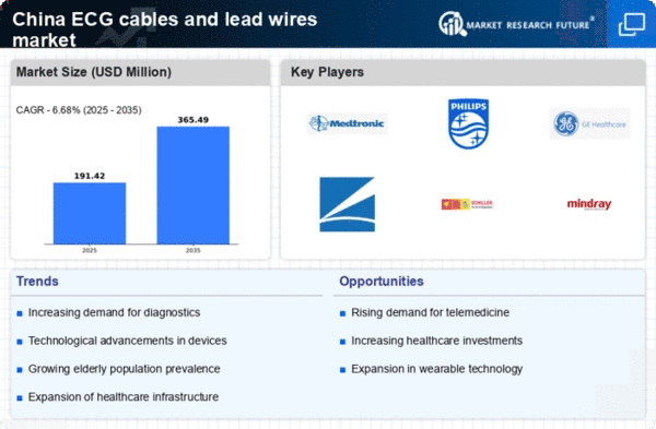 China's aging population is a significant factor influencing the ecg cables-lead-wires market. With an estimated 300 million individuals aged 60 and above by 2025, the demand for cardiovascular monitoring and related healthcare services is expected to rise substantially. Older adults are more susceptible to heart diseases, necessitating regular ECG monitoring. This demographic shift is likely to drive healthcare providers to invest in ECG technology, including cables and lead wires, to cater to the needs of this growing patient population. Consequently, the ecg cables-lead-wires market may experience a robust growth trajectory as healthcare systems adapt to the increasing demand for cardiac care among the elderly.