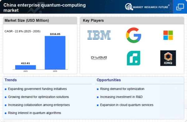 The enterprise quantum-computing market in China is experiencing a surge in demand for advanced computing solutions. As industries increasingly seek to solve complex problems that traditional computing cannot efficiently address, quantum computing emerges as a viable alternative. For instance, sectors such as finance, pharmaceuticals, and logistics are exploring quantum algorithms to optimize operations and enhance decision-making processes. According to recent estimates, the demand for quantum computing services in China is projected to grow at a CAGR of 30% from 2025 to 2030. This growing interest indicates a shift towards adopting quantum technologies, which could revolutionize how enterprises approach data analysis and problem-solving.