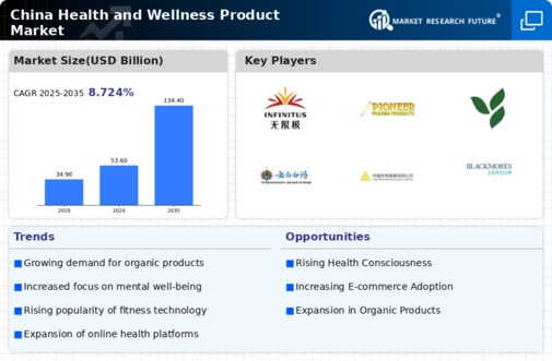 The China Health and Wellness Product Market is undergoing substantial transformations as a result of a variety of market dynamics. One of the primary market drivers is the growing awareness of the advantages of maintaining a healthy lifestyle, which is reflected in the increased emphasis on preventive healthcare. The expanding middle class in China, in conjunction with the increasing disposable incomes, enables individuals to invest in a variety of health and wellness products, including dietary supplements and organic foods.