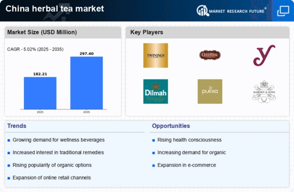 The increasing awareness of health and wellness among consumers in China appears to be a primary driver for the herbal tea market. As individuals seek natural remedies and alternatives to conventional beverages, herbal teas are gaining traction. Reports indicate that the demand for herbal tea has surged, with a notable increase of approximately 15% in sales over the past year. This trend is likely fueled by a growing preference for products perceived as beneficial for health, such as those that aid digestion or boost immunity. The herbal tea market is thus positioned to capitalize on this shift, as consumers gravitate towards beverages that align with their health goals.