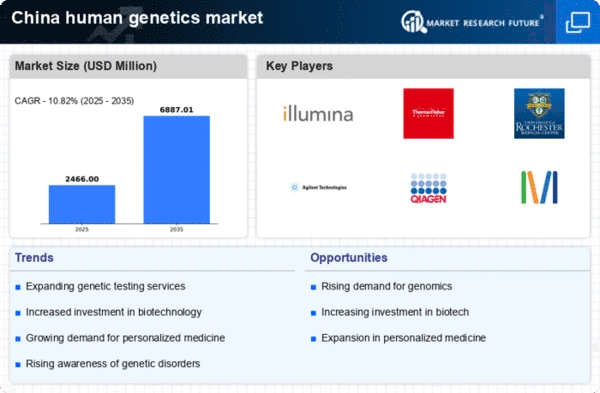 Technological advancements in genetic research are transforming the human genetics market in China. Innovations such as next-generation sequencing (NGS) and CRISPR gene editing are enhancing the accuracy and efficiency of genetic testing. These technologies enable researchers and clinicians to identify genetic mutations more effectively, leading to better diagnostic and therapeutic options. The Chinese market is witnessing a surge in investments in biotechnology firms that specialize in these cutting-edge technologies. As a result, the human genetics market is projected to reach a valuation of approximately $10 billion by 2027, driven by the increasing adoption of these advanced tools in clinical settings.