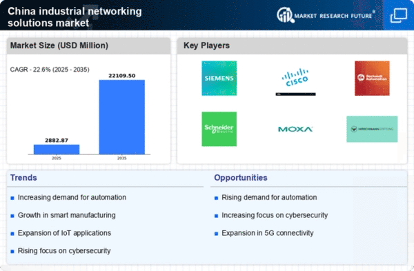 China's industrial networking-solutions market is significantly influenced by the expansion of smart manufacturing initiatives. The government has set ambitious goals to transform traditional manufacturing into smart factories, which rely heavily on interconnected devices and systems. This transformation is expected to contribute approximately 25% to the overall manufacturing output by 2025. As a result, the demand for robust networking solutions that facilitate real-time data exchange and communication among machines is on the rise. The industrial networking-solutions market is likely to see increased investments as companies align with these national strategies, enhancing their operational capabilities.