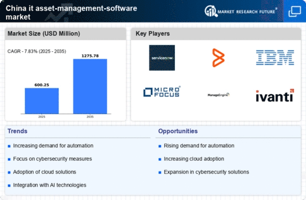 The it asset-management-software market in China is significantly influenced by the growing emphasis on data security. As cyber threats become more sophisticated, organizations are compelled to adopt robust asset management solutions that ensure the protection of sensitive information. The market is projected to expand by approximately 14% over the next few years, as companies prioritize security measures in their IT strategies. Effective asset management not only aids in tracking and managing IT resources but also plays a crucial role in safeguarding data integrity. This heightened focus on security is likely to drive demand for advanced software solutions that offer comprehensive security features, thereby shaping the future landscape of the it asset-management-software market.