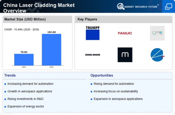 Energy efficiency has become a critical concern for industries in China, prompting a shift towards more sustainable manufacturing practices. The laser cladding market is well-positioned to address these concerns, as the technology allows for precise material application, reducing waste and energy consumption. By utilizing laser cladding, manufacturers can achieve better material utilization, which is essential in an era where resource conservation is paramount. This trend is likely to resonate with industries looking to enhance their sustainability profiles, potentially leading to a 30% increase in demand for laser cladding services. As companies strive to meet regulatory requirements and consumer expectations regarding environmental impact, the laser cladding market may see accelerated growth.