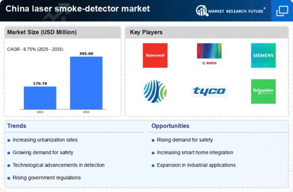 The increasing awareness of fire safety among consumers and businesses in China is driving the laser smoke-detector market. As incidents of fire-related accidents have been reported, there is a growing emphasis on preventive measures. This heightened awareness is reflected in the rising demand for advanced smoke detection technologies, particularly laser smoke detectors, which offer superior sensitivity and faster response times. The market is projected to grow at a CAGR of approximately 10% over the next five years, indicating a robust shift towards more reliable fire safety solutions. Furthermore, educational campaigns and government initiatives aimed at promoting fire safety are likely to bolster the adoption of laser smoke detectors across various sectors, including residential, commercial, and industrial applications.