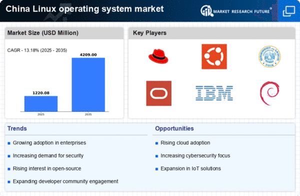 The rapid expansion of cloud computing services in China is significantly impacting the Linux operating system market. As businesses increasingly migrate to cloud environments, the demand for reliable and scalable operating systems rises. Linux is widely recognized for its compatibility with cloud infrastructure, making it a preferred choice for cloud service providers. This trend is likely to accelerate the adoption of linux operating systems, as companies seek to leverage the benefits of cloud technology. Projections indicate that the cloud computing sector could contribute to a 25% increase in the linux operating-system market by 2027, as more organizations transition to cloud-based solutions.