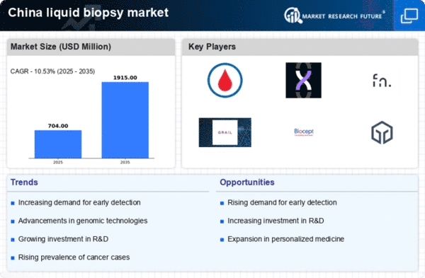 China's rising healthcare expenditure is a significant driver for the liquid biopsy market. The government has been investing heavily in healthcare infrastructure and services, aiming to improve access to advanced diagnostic tools. In 2025, healthcare spending is projected to reach approximately $1 trillion, reflecting a commitment to enhancing patient care. This increase in funding is likely to facilitate the adoption of innovative technologies, including liquid biopsies, which are seen as essential for early cancer detection and monitoring. The liquid biopsy market stands to benefit from this trend, as healthcare providers seek to integrate cost-effective and efficient diagnostic solutions into their practices, potentially leading to a market growth rate of 20% over the next five years.