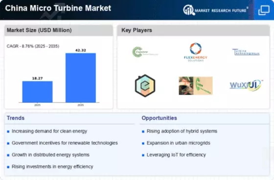 The China Micro Turbine Market benefits from robust government support and incentives aimed at promoting clean energy technologies. The Chinese government has implemented various policies, including subsidies and tax breaks, to encourage the adoption of micro turbines. For instance, the Renewable Energy Law provides financial incentives for renewable energy projects, which has led to a surge in micro turbine installations across the country. In 2025, the total installed capacity of micro turbines in China reached approximately 1.5 GW, reflecting a growing trend towards decentralized energy generation. This supportive regulatory environment is likely to continue fostering growth in the China Micro Turbine Market, as more businesses and consumers seek to capitalize on these incentives.