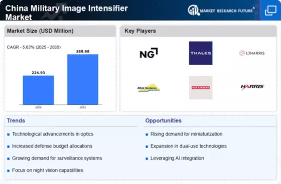 The China Military Image Intensifier Market is also shaped by the prevailing geopolitical tensions in the Asia-Pacific region. As territorial disputes and security concerns escalate, the Chinese military is compelled to enhance its surveillance and reconnaissance capabilities. This situation is likely to drive the demand for advanced image intensifiers, as they play a crucial role in monitoring potential threats. The Chinese government has been proactive in addressing these security challenges, which may result in increased investments in military technologies, including image intensifiers. Consequently, the market could witness a surge in demand as the military seeks to bolster its situational awareness and response capabilities.