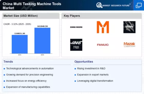 The increasing trend towards automation in the manufacturing sector is a pivotal driver for the China Multi Tasking Machine Tools Market. As industries strive for enhanced efficiency and productivity, multi-tasking machine tools are becoming essential. In 2025, the automation market in China was valued at approximately USD 100 billion, indicating a robust growth trajectory. This shift towards automation necessitates advanced machinery that can perform multiple functions, thereby reducing operational costs and time. The Chinese government has been actively promoting automation through various initiatives, which further propels the demand for multi-tasking machine tools. Consequently, manufacturers are investing in these tools to remain competitive, suggesting a sustained growth potential in the market.