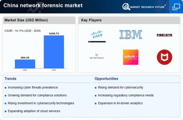 The Chinese government has been actively promoting cybersecurity initiatives, which significantly impacts the network forensic market. Policies aimed at enhancing national security and protecting critical infrastructure have led to increased funding for cybersecurity measures. In 2025, government spending on cybersecurity is projected to exceed $10 billion, with a substantial portion directed towards network forensics. This support not only encourages the adoption of forensic technologies among enterprises but also fosters innovation within the industry. As the network forensic market aligns with governmental objectives, it is likely to experience accelerated growth, driven by public sector demand for advanced forensic solutions to combat cyber threats.