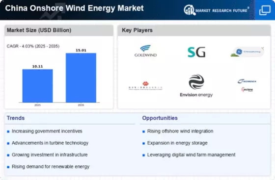 Investment in infrastructure is a critical driver for the China Onshore Wind Energy Market. The expansion of transmission networks and grid integration capabilities is essential for accommodating the growing share of wind energy in the national energy mix. In recent years, China has allocated substantial funds to enhance its energy infrastructure, with investments exceeding USD 100 billion in renewable energy projects. This influx of capital is likely to facilitate the construction of new wind farms and improve the efficiency of energy distribution. Moreover, the development of smart grid technologies is expected to optimize the integration of wind energy into the existing grid, thereby enhancing the reliability and stability of energy supply across the country. Such infrastructure advancements are pivotal for the sustained growth of the China Onshore Wind Energy Market.