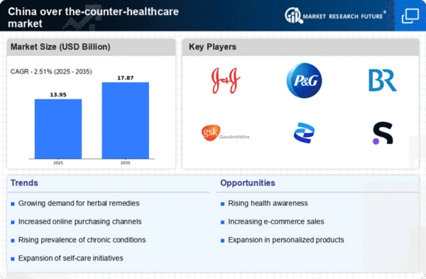 China's demographic shift towards an aging population is significantly impacting the over the-counter-healthcare market. With an increasing number of elderly individuals, there is a corresponding rise in chronic health conditions that require ongoing management. This demographic trend is expected to drive demand for OTC products that address common ailments such as pain relief, digestive issues, and cold and flu symptoms. By 2025, it is estimated that over 25% of the population will be aged 60 and above, creating a substantial market for OTC healthcare solutions. The convenience and accessibility of these products make them an attractive option for older adults who may prefer self-medication over visiting healthcare facilities. Thus, the over the-counter-healthcare market is likely to benefit from this demographic shift, as it aligns with the needs of an aging population.