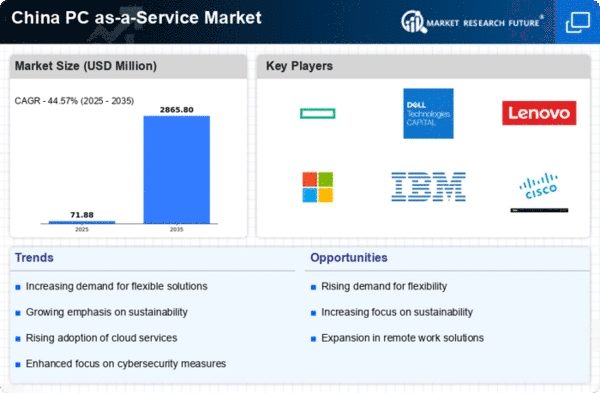 The ongoing digital transformation initiatives across various sectors in China are significantly impacting the pc as-a-service market. Organizations are increasingly adopting digital tools and technologies to enhance their operational efficiency and customer engagement. This transformation is driving the demand for flexible and scalable IT solutions that can support new digital strategies. In 2025, it is expected that the pc as-a-service market will grow by approximately 12% as businesses seek to leverage technology for competitive advantage. The pc as-a-service market is thus well-positioned to cater to this demand, providing organizations with the necessary resources to navigate their digital journeys effectively.