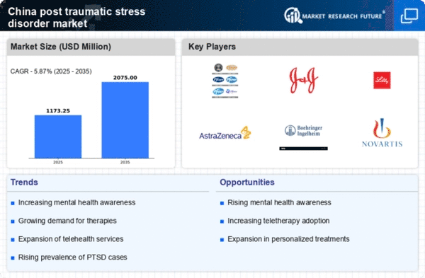 The rising incidence of trauma-related events in China appears to be a significant driver for the post traumatic-stress-disorder market. Factors such as natural disasters, accidents, and urban violence contribute to a growing number of individuals experiencing PTSD. According to recent statistics, approximately 6.5% of the population may suffer from PTSD at some point in their lives, indicating a substantial need for effective treatment options. This increasing prevalence necessitates the development of targeted therapies and interventions, thereby expanding the market. Furthermore, as awareness of mental health issues grows, more individuals are likely to seek help, further driving demand for services and products related to the post traumatic-stress-disorder market.