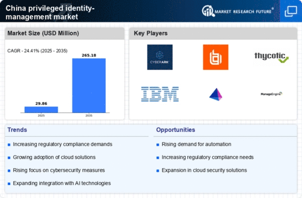 China's ongoing digital transformation across various sectors is a key driver for the privileged identity-management market. As organizations increasingly adopt digital technologies, the complexity of managing user identities and access rights escalates. In 2025, the digital economy in China is projected to reach approximately $6 trillion, creating a pressing demand for sophisticated identity management solutions. Companies are recognizing that effective privileged identity management is essential to ensure secure access to digital resources, thereby fostering trust and compliance in their operations.