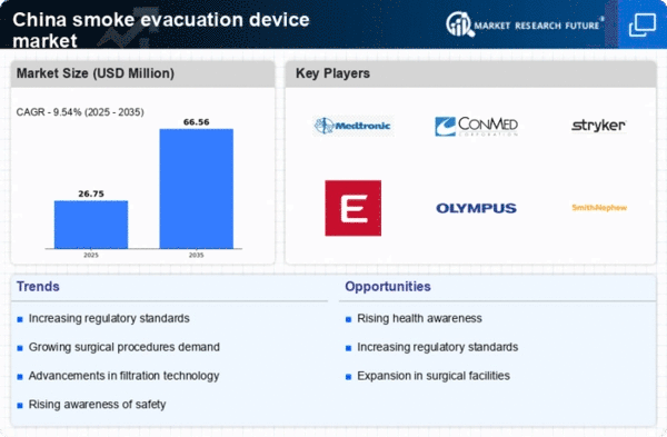 The smoke evacuation-device market is significantly influenced by the rise in surgical procedures across China. As the number of surgeries increases, so does the need for effective smoke evacuation solutions to mitigate the risks associated with surgical smoke. In 2025, it is anticipated that the number of surgical procedures will exceed 20 million annually, creating a substantial demand for smoke evacuation devices. This surge is likely to propel the market forward, as healthcare facilities seek to enhance patient safety and comply with emerging regulations. The growth in surgical volume is a key driver for the smoke evacuation-device market.