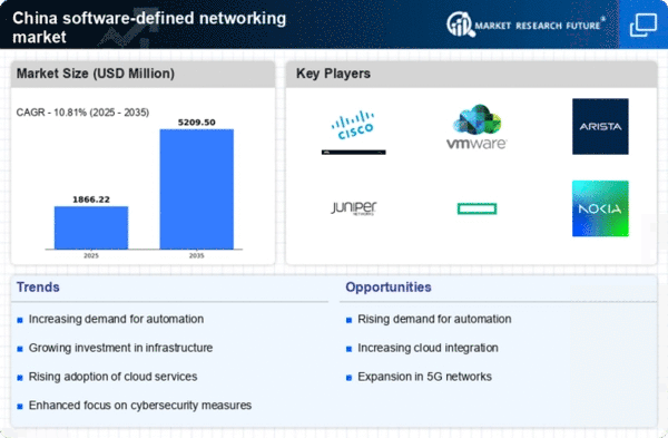 Cost efficiency remains a pivotal driver in the software defined-networking market in China. Organizations are increasingly recognizing the financial benefits of adopting software defined networking solutions, which can lead to reduced operational costs and improved resource allocation. By leveraging virtualization and automation, companies can minimize hardware expenditures and streamline network management processes. Recent studies indicate that businesses can achieve up to 30% savings in operational costs by implementing these technologies. As the competitive landscape intensifies, the emphasis on cost-effective solutions is likely to propel the software defined-networking market forward, as firms seek to optimize their expenditures while enhancing performance.