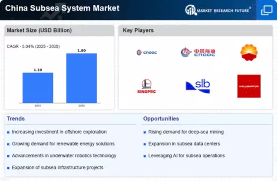 The China Subsea System Market is experiencing a notable increase in demand for offshore oil and gas resources. As domestic energy consumption rises, the need for efficient extraction methods becomes paramount. The National Energy Administration has reported that China's offshore oil production is projected to reach 40 million tons by 2025, necessitating advanced subsea systems for exploration and production. This growth is driven by the country's commitment to energy security and the desire to reduce reliance on imported fossil fuels. Consequently, subsea technologies that enhance recovery rates and minimize environmental impact are likely to see heightened adoption. The integration of innovative subsea systems is expected to play a crucial role in meeting these ambitious production targets, thereby propelling the overall market forward.