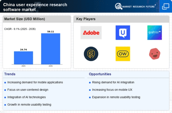 The emergence of remote research methodologies is reshaping the user experience-research-software market in China. As organizations adapt to changing work environments, remote user testing and research have gained traction. This shift allows companies to gather user insights from diverse geographical locations, enhancing the breadth of their research. The market is witnessing a rise in software solutions that support remote collaboration and data collection, which is expected to grow by 20% in the coming years. This trend indicates a transformation in how user experience research is conducted, making it more accessible and efficient, thus driving the growth of the user experience-research-software market.
