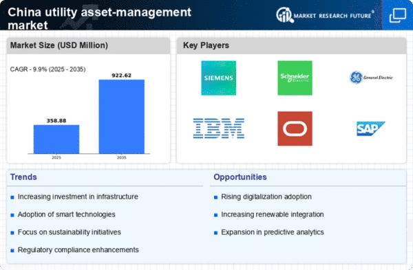Technological advancements are playing a pivotal role in shaping the utility asset-management market in China. The adoption of Internet of Things (IoT) devices, artificial intelligence (AI), and big data analytics is revolutionizing how utility companies manage their assets. These technologies enable real-time monitoring and predictive maintenance, which can significantly reduce operational costs and enhance service reliability. The market is expected to grow by approximately 9% as companies increasingly leverage these technologies to optimize asset performance. Moreover, the integration of advanced analytics allows for better decision-making, leading to improved asset utilization and reduced downtime. As such, the ongoing technological evolution is a key driver of growth within the utility asset-management market.
