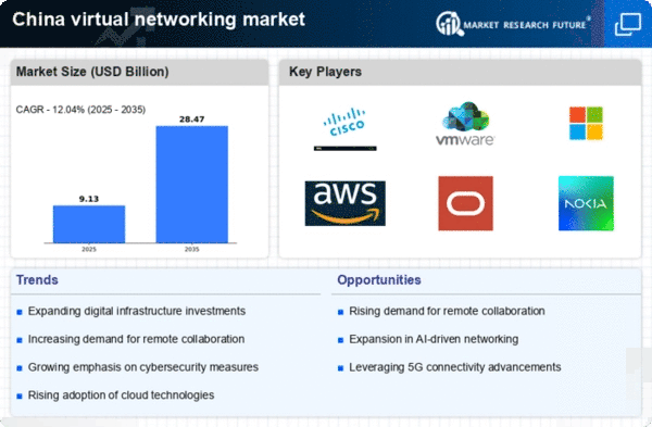 The virtual networking market is being propelled by rapid technological advancements in networking infrastructure within China. Innovations such as 5G technology and software-defined networking (SDN) are transforming the way businesses operate. By 2025, it is expected that 5G networks will cover over 90% of urban areas in China, enabling faster and more reliable virtual networking solutions. This technological evolution is likely to enhance the capabilities of the virtual networking market industry, allowing for improved connectivity and reduced latency. As organizations increasingly adopt these advanced technologies, the demand for sophisticated virtual networking solutions is expected to rise, further driving market growth.