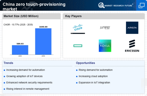 The zero touch-provisioning market in China is experiencing a surge in demand for efficient network solutions. As businesses increasingly rely on digital infrastructure, the need for seamless connectivity and rapid deployment of network services becomes paramount. This trend is driven by the growing number of Internet of Things (IoT) devices, which are projected to reach over 1 billion by 2025 in China. Consequently, organizations are seeking solutions that minimize manual intervention and reduce operational costs. The zero touch-provisioning market industry is well-positioned to address these needs, offering automated provisioning processes that enhance network efficiency and reliability. Furthermore, the increasing complexity of network environments necessitates solutions that can adapt quickly to changing demands, further propelling the growth of this market.