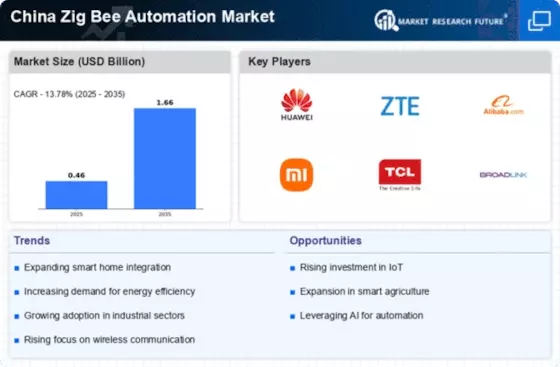 The increasing integration of Internet of Things (IoT) technologies within the China Zig Bee Automation Market is a notable driver. As smart devices proliferate, the demand for seamless communication protocols like Zig Bee is surging. In 2025, the number of connected devices in China reached approximately 1.5 billion, with projections suggesting this could rise to 2.5 billion by 2027. This growth indicates a robust market for Zig Bee automation solutions, which facilitate efficient device interconnectivity. Furthermore, the Chinese government has been promoting IoT initiatives, which further enhances the relevance of Zig Bee technology in smart homes and industrial applications. The synergy between IoT and Zig Bee is likely to foster innovation and expand market opportunities.