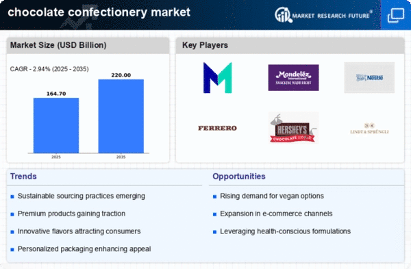 The Middle East and Africa region, with a market size of 10.0%, presents untapped opportunities in the chocolate confectionery sector. The growth is driven by increasing urbanization, a young population, and rising disposable incomes. Additionally, cultural shifts towards Western-style consumption patterns are fostering demand for chocolate products. Regulatory frameworks are gradually improving, enhancing food safety and quality standards. Countries like South Africa and the UAE are emerging as key markets, with local and international brands vying for consumer attention. The competitive landscape is characterized by a mix of established players and new entrants, creating a dynamic environment. As consumer preferences evolve, the region is poised for significant growth in chocolate confectionery.