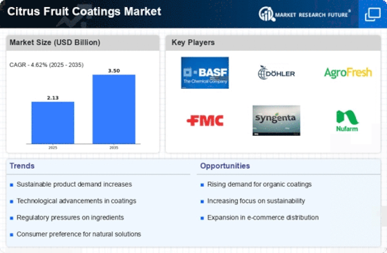 Technological innovations are playing a crucial role in shaping the Citrus Fruit Coatings Market. Advances in coating formulations, including the use of nanotechnology and smart coatings, are enhancing the effectiveness of fruit coatings. These innovations allow for improved moisture retention, enhanced barrier properties, and extended shelf life. As a result, producers are increasingly adopting these advanced coatings to meet the growing consumer expectations for quality and freshness. The market for advanced coatings is expected to witness a substantial increase, with projections indicating a growth rate of around 5% annually over the next few years. This trend highlights the importance of continuous research and development in the coatings sector.