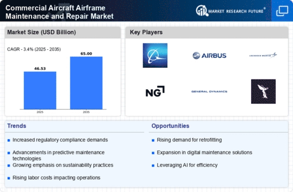 The Middle East and Africa region is gradually establishing itself in the Commercial Aircraft Airframe Maintenance and Repair Market, with a market size of $2.5 billion anticipated by 2025. The growth is driven by increasing air travel and the expansion of airline fleets, particularly in the Gulf states. Government initiatives aimed at enhancing aviation infrastructure and safety standards are also contributing to market development.