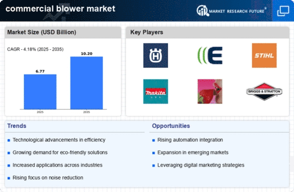 Europe's commercial blower market is valued at $1.8 billion, reflecting a growing trend towards outdoor maintenance and landscaping. The demand is fueled by increasing environmental awareness and regulations promoting sustainable practices. Countries like Germany and France are leading the charge, with a focus on energy-efficient and low-emission products, aligning with EU regulations aimed at reducing carbon footprints. The competitive landscape features major players such as Stihl and Makita, who are innovating to meet the evolving demands of consumers. The market is characterized by a mix of established brands and emerging companies, fostering a dynamic environment. The presence of stringent regulations encourages manufacturers to invest in R&D, ensuring compliance while enhancing product offerings.