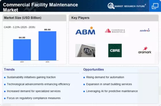 The Middle East and Africa region is gradually emerging in the Commercial Facility Maintenance Market, with a market size of 4.0% as of 2024. The growth is driven by increasing investments in infrastructure, urban development projects, and a rising focus on facility management services. Governments are recognizing the importance of maintaining public and private facilities, leading to a surge in demand for professional maintenance services across various sectors.