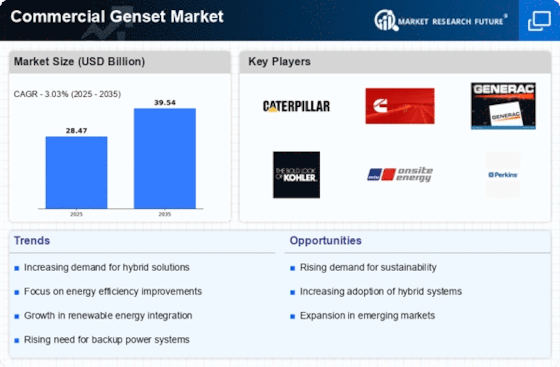 The Commercial Genset Market is witnessing a shift towards the adoption of renewable energy sources, which is reshaping the landscape of power generation. As businesses increasingly seek to reduce their carbon footprint, there is a growing interest in hybrid power solutions that combine traditional gensets with renewable energy sources such as solar and wind. This trend not only enhances energy efficiency but also aligns with global sustainability goals. The integration of renewable energy into commercial genset systems is expected to create new opportunities for market players, as companies look for innovative solutions to meet their energy needs while adhering to environmental regulations.