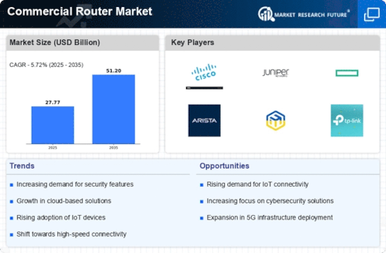 The increasing demand for high-speed internet connectivity is a primary driver of the Commercial Router Market. As businesses expand their digital operations, the need for robust and efficient networking solutions becomes paramount. According to recent data, the number of internet users has surged, leading to a projected growth rate of approximately 10% annually in the commercial router segment. This trend indicates that organizations are investing heavily in advanced routing technologies to support their bandwidth-intensive applications. Consequently, manufacturers are focusing on developing routers that can handle higher data throughput and provide seamless connectivity. The emphasis on high-speed internet is likely to continue, further propelling the Commercial Router Market as companies seek to enhance their operational efficiency and customer satisfaction.